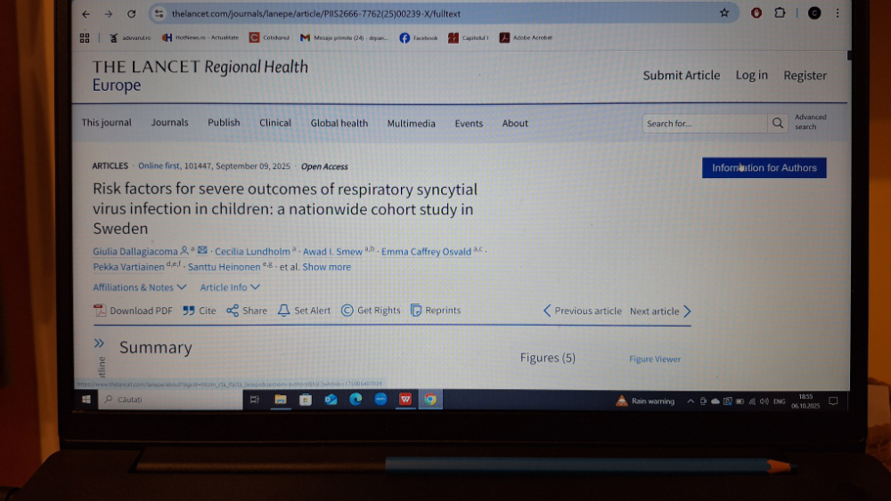 Un studiu de cohortă derulat în Suedia, la scară națională, a fost publicat anul acesta în The Lancet Regional Health – Europe și mi s-a parut important deoarece aduce clarificări privind înțelegerea factorilor care predispun la forme grave ale infecției cu virusul respirator sincițial.